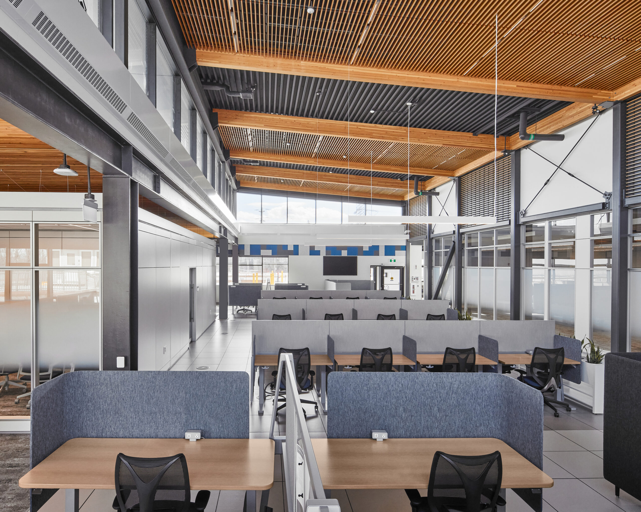 Envisioned as an inclusive and sustainable flagship facility, this 2,352 m² multi-functional workplace unites previously separate administrative and construction teams into a cohesive, future-ready hub. With 1,632 m² of office space and 720 m² of workshop area, the LEED Gold-shadowed project sets a new benchmark in flexible, inclusive, and wellness-oriented design.